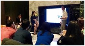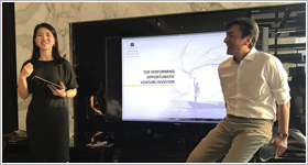 | 新加坡国际企业发展局赠与途友礼品 | 伟恩达合伙人Linda与Finan(百度投资人) | Dr Finan私人会所论投资 |