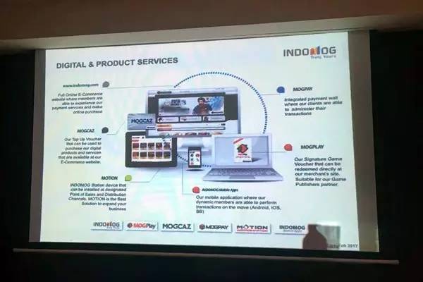 Indomog是印尼最大的在线支付解决方案提供商之一,为玩家提供最大的线下支付,玩家可以在各种实体店像杂货零售商Tja、家乐福、7-11便利店购买indomog的点卡,少数网吧甚至在一些大学里的商店里也能沟通。不仅如此,indomog也接受在线支付,银行汇款,信用卡,手机银行和网上银行都可以使用。目前indomog有大约35万个用户、90个商户和超过3万个分销渠道。